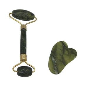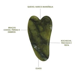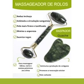 de rolos facial 2 em 1 com pedra gua sha pedra de jade Contém:01 facial pedra de jade 2 em 1 com pedra gua sha O facial 2 em 1 com pedra gua sha é o segredo para uma pele radiante e revitalizada. Com 2 massageadores tradicionais asiáticos e um gua sha, podem ser em diversas partes do corpo, como rosto, pescoço, braços, pernas, costas e barriga. Combinando as propriedades terapêuticas da pedra gua sha com a tecnologia da massagem facial, esse aparelho oferece uma experiência única de cuidado da pele. A pedra gua sha, feita de jade natural, é conhecida por sua capacidade de estimular a circulação sanguínea, reduzir o inchaço e promover a renovação celular. Além disso, o possui diferentes níveis de vibração, permitindo ajustar a intensidade de acordo com suas preferências. Com apenas alguns minutos de uso diário, você sentirá a diferença na textura e aparência da sua pele. Rugas e linhas finas são suavizadas, a pele fica mais firme e tonificada, e a sensação de relaxamento é incrível. Adquira agora o seu e descubra o poder de uma massagem facial revigorante. Sinta-se bem, sinta-se linda Características do : - ajuda a melhorar o contorno corporal, e aumenta a firmeza da pele; - estimila a circulação do sangue; - reduz o inchaço; - promove uma maior relaxamento muscular; dicas de uso: -pedra maior : usar na testa, bochecha e pescoço. -pedra menor: usar ao redor dos olhos, lábios e náriz. -gua sha: usar em ângulo de 15 ao mover do centro do rosto em direção à linha do cabelo e em seguida, ao longo do pescoço em direção a clavícula. Especificações: Material: cobre e pedra jade Dimensões: Roller: comprimento: 15cm x larg.: 5,5cm Gua sha: comprimento : 7cm x larg.: 4,5cm Peso: aprox. 100g Marca: Não Informado