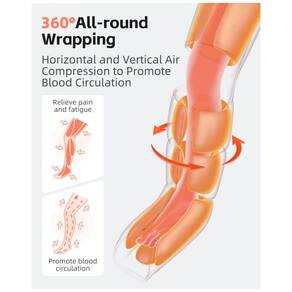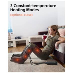 Este massageador de pernas com compressão de ar possui 12 câmaras de ar de massagem integradas, massagem envolvente de 360 graus para toda a perna, do pé à panturrilha e à coxa, 3 modos e 3 intensidades que proporcionam várias experiências de massagem, além de 3 níveis de aquecimento (temperatura constante) que podem ser desligados.