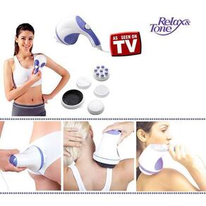 Portátil e prático, ajuda a eliminar gorduras e esculpir o corpo, através de seu movimento orbital e poderosa vibração. Com um giro de 2.500 RPM e quatro acessórios, é ideal para uso a qualquer hora em qualquer lugar. Tonifica os braços, alivia a tensão e o stress nos ombros e nas costas, define e esculpe o Abdômen modela e tonifica os quadris, modela e alivia a tensão muscular nas pernas e coxas, relaxa o músculo cansado e dolorido da panturrilha com o uso da lixa remove calosidades e pele seca dos pés, além de proporcionar uma deliciosa e relaxante massagem nesta região Alta Rotação (2500 RPM) Vibrações Vigorosas Relaxa os músculos contraídos Intensidade da Massagem Regulável. Modelo: Relaxe Spin tone; Acompanha tampa protetora com tecido: Sim, para revestir os discos; Discos: 1 Disco de Massagem ondulado; 01 Disco de massagem com roletes; 01 Disco com lixa para pés; 01 Disco de massagem liso; Potência máxima de rotação: 2500 RPM; Torneia músculos: Sim (somente alguns locais); Botão de ajuste rápido: Sim; Precauções: Para massagear o corpo utilize a tampa com tecido que acompanha o produto; Voltagem: 110 Volts; Freqüência: 60Hz; ANVISA-25351.281242/2006-39; Potência: 25W; Cor disponível: Branco com azul; Regulagem de velocidade: Sim; Cabo ergonômico: Sim; Produto leve: Sim, apenas 0,80 gramas; Grau de rotação: 360 graus; Principais funções: Massagear locais de tensão ou locais doloridos e torneia regiões musculares; Portátil e prático: Sim; Pode ser utilizado em: Residência, local de trabalho e até mesmo depois de um treinamento da academia;