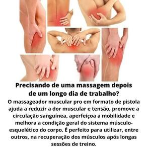 chegou cansado do trabalho e está precisando relaxar os musculos tensos ao longo do dia o seu momento chegou, este produto é para você seja o seu trabalho na empresa, motorista, atleta, enfermeiro ou até mesmo massagista entre outros; com esforços ao longo do seu dia, você precisa disso se você pega pesado no trabalho você provavelmente tem dor nas costas, pontos de tensão nos ombros e muitas vezes massagem manual com a maioria dos massagistas não obtém pressão localizada o suficiente, então nós recomendamos está mini ferramenta de aplicação de massagem para você relaxar, e começar o outro dia renovado. Possui cabeça vibratória que permite ajustar a velocidade, frequência e força com que é aplicada. A frequência se refere ao número de impactos por minuto; intensidade é a profundidade que as vibrações alcançam. O dispositivo funciona colocando-o em um músculo para permitir que vibre. Especificações: - carregador de energia entrada avaliado: 100 50 240 v 30 /50 hz