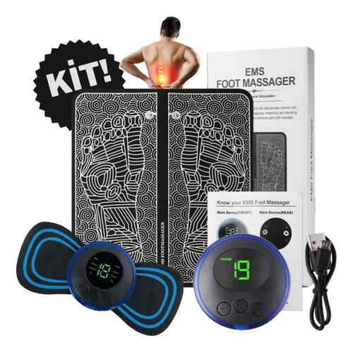 Massageador ems kit tapete pés + pescoço lombar coluna perna Kit com dois massageadores, sendo eles:o massageador portátil estará dentro da embalagem do tapete massageador1 massageador portátil elétrico1 tapete massageador elétricoapresentamos o massageador elétrico com pulsos de eletroestimulação, um equipamento que pode ser seu aliado na busca por uma vida mais saudável. Com ele, você poderá aliviar dores crônicas e auxiliar na recuperação muscular após atividades físicas intensas. Além disso, seu uso regular pode ajudar na melhora do tônus e firmeza da musculatura. Com design ergonômico e fácil de usar, este massageador elétrico é a escolha ideal para quem busca conforto, praticidade e qualidade de vida. Adquira já o seu e experimente os benefícios que ele pode trazer para o seu dia a dia.O massageador elétrico utiliza a tecnologia ems eletroestimulação muscular e é a solução perfeita para quem busca conforto e alívio de dores musculares no final do dia. Com sua tecnologia de estimulação elétrica, ele atua na musculatura, promovendo uma sensação de relaxamento e bem-estar. Além disso, ele ainda estimula a circulação e combate dores musculares, oferecendo 8 modalidades de estimulação e 19 intensidades diferentes para atender às suas necessidades.Cuidados com o produto:- não mantenha em altas ou baixas temperaturas ou umidade ao armazenar a unidade- a sujeira pode atrapalhar o efeito do usomodo de limpeza:- limpe o ponto sujo do massageador com pano úmido com material neutro- limpe novamente com pano seco sem pressionar muitoitens inclusos:1 base adesiva1 gerador de estímulos1 cabo usb1 manual de instruçõesespecificações técnicas:- 8 modalidades- 19 intensidades- desliga automaticamente após 30 segundos sem contato com a pele- voltagem: 3,7v- saída máxima: 35maa- frequência: 1-100hz- capacidade da bateria: 200mahgarantia do vendedor: 1 meses Marca: Shopbr