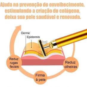 Descrição * Massageador Facial Elétrico Anti Rugas Botox Lifting Vibração * O Massageador Facial Ajuda na prevenção do envelhecimento, estimulando a criação do colágeno, deixa sua pele saudável e renovada. Massagem terapêutica com alta vibração, ajuda na prevenção do envelhecimento, reduz rugas facial, firma a pele, remove papada, obtêm a absorção de nutrientes, elimina o excesso de toxinas, melh