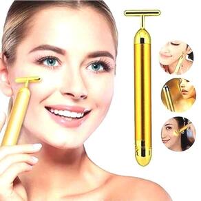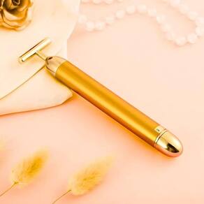 Facial Elétrico Gold 24k Harmonização Anti-rugas Facial Elétrico Gold 24k Harmonização Anti-rugas ===================================== Contém: 01 Unidade Especificações: - Medida: 14,4cm x 3,2cm - Rotações por Minuto: 6000 RPM - Alimentação: 01 Pilha AA Não inclusas - Cor: Dourado É super fácil de usar: 1. Faça movimentos ascendentes e descendentes em todo o rosto. 2. Em volta dos olhos e faça todo o contorno, concentre-se nos pés de galinhas, movimentando na para cima e para baixo. 3. Na testa e na linha do sorriso bigode chinês , role em um movimento para cima e para baixo. Mova-se através da testa usando os mesmos movimentos. 4. No pescoço, comece com a base do pescoço e se mova para cima em direção à linha da mandíbula. Repita o mesmo movimento por todo o pescoço. ===================================== Devido à diferença entre monitores e iluminação diferentes, pode haver variação na tonalidade apresentada no anúncio. Medidas muito aproximadas. Marca: Não Informado