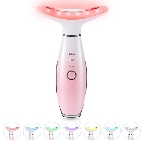 ELISHINE Massageador facial de pescoço em 7 cores – ferramenta de massagem facial para cuidados com a pele em casa, massageador facial vibratório com térmica, rosa - Componentes incluídos: massageador facial * 1, cabo USB-C * 1, manual do usuário * 1, caixa de embalagem requintada * 1 - Como usar: limpe o rosto e aplique alguns produtos para a pele antes de usar. Pressione e segure o botão para ligar e selecione o modo que você precisa. Segure os anéis de detecção em ambos os lados e coloque o sensor em sua pele, o dispositivo começará a vibrar. Recomenda-se usar uma ou duas vezes por dia por cinco a dez minutos. - Este massageador facial e de pescoço é leve e portátil, fácil de transportar e você pode usá-lo em qualquer lugar. - Esta ferramenta massageadora facial é adequada para todos os tipos de pele e bem embalada, o que a torna um presente decente para qualquer ocasião, como Dia das Mães, Dia dos Pais, aniversário, Natal, etc. - Estamos sempre felizes em ajudar. se tiver algum problema e com você dentro de 24 horas para ajudá-lo.