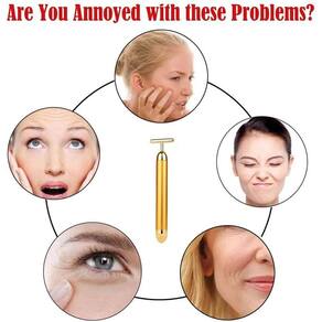 facial energy beauty bar elétrico - aparelho para energizar sua pele - tecnologia de microestimulação por vibração com 6000 rpm's que garante uma pele radiante e saudável. Você merece Tecnologia de microvibração de até 6.000 rpm Promove a circulação sanguínea para suavizar rugas, afinar o contorno do rosto e remover acne e as suas marcas, olheiras e inchaços. O dispositivo melhora consideravelmente a produção de colágeno. O processo de envelhecimento é retardado e eliminadas toxinas da pele através do simples uso do aparelho ao acordar e ao dormir. A forma de t de cabeça produz suave vibração e atinge facilmente qualquer parte do seu corpo e rosto para melhorar a sua aparência. Ele pode ser na testa, bochecha, pescoço, clavícula, ombro, braço, mãos e pernas. Benefícios: - ajuda na prevenção do envelhecimento, estimulando a criação do colágeno, deixa sua pele saudável e renovada. - remove á papada - harmonização facial - reduz o volume facial - reduz rugas faciais - firma á pele - reduz olheiras - realiza indução de cremes e seruns faciais Portátil, pode leva-lo na bolsa e utilizar no local de sua preferência Modo se usar: 1. Faça movimentos ascendente e descendente em todo o rosto. Em volta dos olhos e faça todo o contorno, concentre-se nos pés de galinhas, movimentando na para cima e para baixo. 2. Na testa e na linha do sorriso bigode chines , role em um movimento para cima e para baixo. Mova-se através da testa usando os mesmos movimentos. 3. No pescoço, comece com a base do pescoço e se mova para cima em direção à linha da mandíbula. Repita o mesmo movimento por todo o pescoço. Obs.: use-o três vezes por dia durante pelo menos três minutos para ter os benefícios anti envelhecimento e melhorar a saúde da sua pele Dados técnicos Medidas axlxp :4x18x30 cm Peso: 0,12 kg Tipo de alimentação: pilhas aaa incluso Materiais Material do produto: alumínio Cor: dourado Utilização Ferramenta que utiliza a micro vibração como terapia de massagem para contornar os efeitos indesejáveis do envelhecimento. Conteúdo: 1x estimulador de colágeno anti rugas 1x sacola 1x caixa 1x manual em inglês Marca: Não Informado Ean: 7906953262911