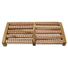 Especificações: - Material: Madeira envernizada - Dimensões: 12 cm de comprimento x 27 cm de largura - Contém 10 rolos massageadores