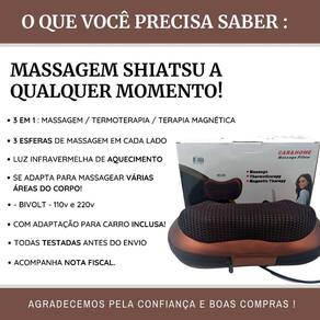 - ALMOFADA ELÉTRICA DE MASSAGEM SHIATSU PARA CASA OU PARA O CARRO - 3 EM 1 INFRAVERMELHO - BIVOLT (110V / 220V