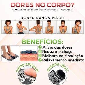 Massagem Personalizada: Kit Tapete e Mini Massageador Borboleta EMS para Dor Muscular nos Pés Kit Tapete Massageador E Mini Massageador Elétrico é a solução perfeita para quem busca conforto e alívio de dores musculares no final do dia. Com sua tecnologia de estimulação elétrica, ele atua nos pontos de acupuntura, promovendo uma sensação de relaxamento e aliviando aquele frequente peso das pernas ao final. Além disso, ele ainda estimula a circulação e combate dores musculares, oferecendo 8 modalidades de estimulação e 19 intensidades diferentes para atender às suas necessidades.