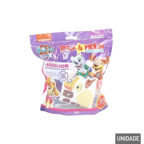 Massinha de Modelar 08 Peças Patrulha Canina Transforme a diversão em uma verdadeira missão com a nossa Massinha de Modelar 08 Peças Patrulha Canina com Adesivos! Ideal para os pequenos fãs da série, este conjunto colorido proporciona horas de criatividade e entretenimento.\nAlém das massinhas, o conjunto vem com uma cartela de Adesivos, com detalhes específicos dos personagens e itens do universo da Patrulha Canina. Seja construindo a base de uma missão ou criando novas histórias, a imaginação das crianças não terá limites!\nContém: 7 Massinhas cores, 1 Cartela de Adesivos.\nEspecificações:\nMarca : MAGIC\nTipo de material : E.V.A , Plástico\nCores ou Estampa : Colorido\nDimensões do Produto : 18 X 17 X 6 CM\nDimensões da Embalagem : 18 X 17 X 6 CM\nPeso Bruto (Gramas) : 0.089