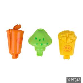 Massinha de Modelar 10 Peças Moldes Alimento Deixe a imaginação e a criatividade correrem soltas com a divertida Massinha de Modelar, ideal para crianças que adoram brincar de faz de conta, este kit proporciona horas de entretenimento ao permitir que os pequenos criem seus próprios lanchinhos usando massinhas coloridas e moldes temáticos.\nO conjunto acompanha 10 peças, incluindo potinhos de massinha e moldes com formas de alimentos como batata frita, morango, copo de refrigerante e outros elementos do universo da alimentação. Com cores vivas e texturas maleáveis, a massinha é fácil de moldar, ideal para estimular a coordenação motora, criatividade, percepção tátil e o desenvolvimento cognitivo.\nEspecificações:\nMarca : ATTIC\nTipo de material : Polimeros, Pigmentos\nCores ou Estampa : Colorido\nDimensões do Produto : 29 X 19,5 X 2 CM\nDimensões da Embalagem : 29 X 19,5 X 2 CM\nPeso Bruto (Gramas) : 0.193