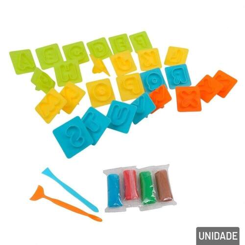 Massinha de Modelar 32 Peças Moldes Letras A Massinha de Modelar 32 Peças Moldes Letras é uma excelente ferramenta educativa para crianças! Com 32 peças coloridas, a brincadeira se torna ainda mais divertida e criativa. Cada peça traz moldes das letras do alfabeto, permitindo que os pequenos explorem o aprendizado das letras de forma prática e divertida, enquanto desenvolvem habilidades motoras e a coordenação visual.\nAs cores vibrantes da massinha atraem a atenção das crianças e as motivam a criar formas, palavras e até mesmo histórias. Ideal para estimular a criatividade, a memória e o reconhecimento das letras, esta massinha é perfeita para momentos de aprendizado e diversão ao mesmo tempo!\nContém: 4 Massinhas, 26 Moldes, 2 Espatulas.\nEspecificações:\nMarca : ARK BRASIL\nTipo de material : Massinha, Plástico\nCores ou Estampa : Colorido\nDimensões do Produto : 11,5 X 15 X 5,5 CM\nDimensões da Embalagem : 13 X 18 X 4 CM\nPeso Bruto (Gramas) : 0.203