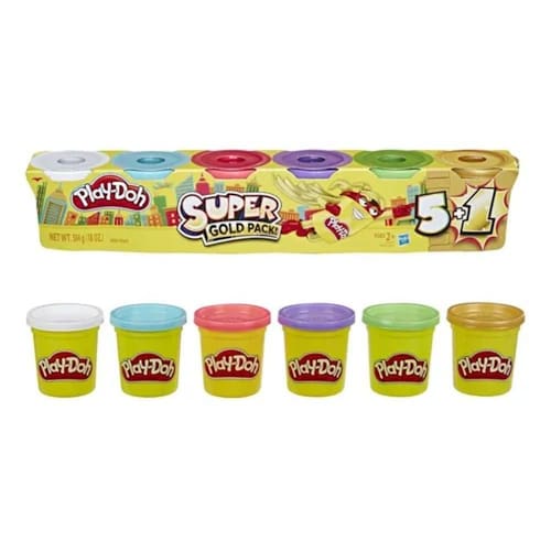 Imagine um universo criativo repleto de brilho: o Play-Doh Super Silver Gold Pack da Hasbro coloca nas mãos das crianças (a partir dos 2 ou 3 anos, conforme indicação) a magia de modelar com cores vivas e um toque metálico único. Composto por seis potes cinco em tons tradicionais que estimulam a imaginação e um especial, prateado ou dourado, que adiciona um acabamento cintilante aos projetos o conjunto soma quase 500 g de massa de modelar atóxica, lavável e segura.