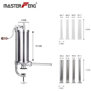 Especificações: Fabricante: Master Feng, Código de Barras: 719970238886, Dimensões do Produto: 49,53 x 15,24 x 15,24 centímetros, Peso do Item: 4 quilogramas, Número do modelo: MF-3005C, Material: Aço Inoxidável, Cor: Prata, Usos Recomendados para o Produto: Fabricação de Linguiças Marca: Não Informado