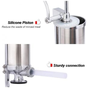A Máquina de Fazer Linguiças Master Feng é perfeita para preparar linguiças, salames e outros recheios de carne em casa. Feita em aço inoxidável de alta qualidade, garante durabilidade e facilidade na limpeza. Seu design vertical permite um enchimento eficiente das linguiças. Acompanha oito tubos de enchimento de tamanhos variados, possibilitando personalizar o diâmetro das linguiças. A base resistente oferece estabilidade e a empunhadura ergonômica proporciona conforto durante o uso.