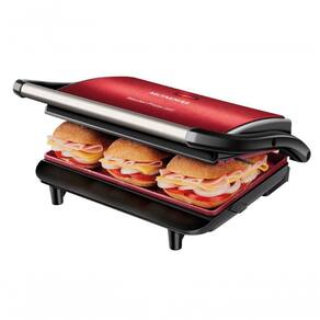 O Master Press Red Ceramic Mondial é a combinação perfeita de sanduicheira, grill e chapa para que você prepare do café ao jantar com um único aparelho. Faça grelhados, peixes, ovos, omeletes, tapiocas, sanduíches, pão na chapa e diversas outras receitas com a combinação de chapa lisa inferior e grelha superior, além de chapas ajustáveis que se adaptam a alimentos de diferentes espessuras. O revestimento antiaderente ajuda a grelhar sem adição de óleo, preserva o sabor, evita que os alimentos grudem e simplifica a limpeza. Para completar, conta com 1 ano de garantia Mondial. Saiba mais sobre o Master Press Red Ceramic PG-01-RC-CL da Mondial: