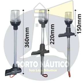 Mastro 40cm Fabricado em plástico de alto impacto branco e alumínio, mastro de alcançado tem iluminação do tipo led que proporciona visibilidade de até 1 milha sendo composto por um par de luzes led com lente em policarbonato cristal. Luz de navegação marítima para barcos e lancha. Uso obrigatorio em todas as embarcações motorizadas Mastro de alcançado 35cm retrátil Porta bandeira Altura da haste é regulável, pode ser totalmente recolhida quando o barco não estiver em uso e/ou coberto com lona. Luz bicolor proa bombordo e boreste em led 12v / barcos