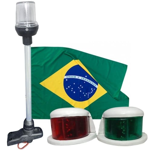 Itens inclusos 01 - mastro de alcançado de 40cm em led 1 milha de alcance 01 - luz de navegação branca bb-be em led 01 - bandeira do brasil oficial 22 x 33 cm