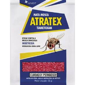 ATRATEX MATA MOSCA é um produto para controle de infestações de mosca, com atrativo alimentar e feromônio Tricosene. Isca granulada com atrativo sexual indicado para o controle de moscas em instalações rurais, tais como: Estábulos, Cocheiras, Pocilgas, Aviários, Canis, Haras, Matadouros e outros locais com infestações.