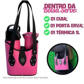 Dentro da Bolsa serve uma térmica de 1L, 1 Cuia e 1 Porta Mate.