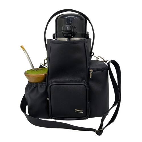 A nossa Bolsa Mateira possui compartimento para térmica com redução de tamanho nas costas (desse modo pode acomodar tanto a térmica grande quanto o modelo menor), possui um bolso para o pacote de erva mate, um bolso para a cuia e um bolso de zíper para levar objetos que desejar. Possui uma alça de mão e alça transversal para facilitar o transporte. Trabalhamos com material sintético de alta qualidade e durabilidade. Não hidrolisa (não descasca). Metais Niquelados.
