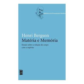 Título Do Livro: Matéria e memória Subtítulo Do Livro: Ensaio sobre a relação do corpo com o espírito Série: Coleção Biblioteca do pensamento moderno Autor: Bergson, Henry Idioma: Português Editora Do Livro: Editora Wmf Martins Fontes Ltda Capa Do Livro: Mole Ano De Publicação: 2010 Quantidade De Páginas: 304 Altura: 185 mm Largura: 125 mm Peso: 516 g Gênero Do Livro: Filosofia e psicologia Subgêneros Do Livro: Filosofia Data De Publicação: 20-05-2010