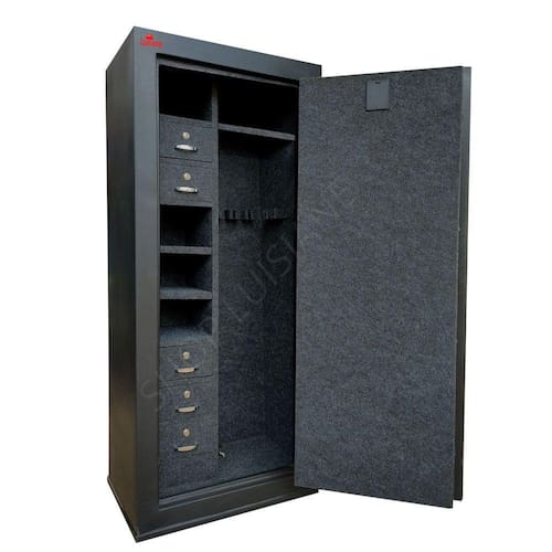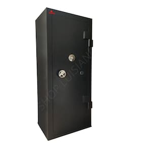 Estrutura do cofre: Corpo fabricado em chapa de 1,2mm e porta em chapa 2mm. Porta com 04 travas maciças de 18mm de diâmetro. Pintura em esmalte sintético. Gavetas com fechaduras. O cofre já vai com 04 furos na parte de trás para fixação na parede.