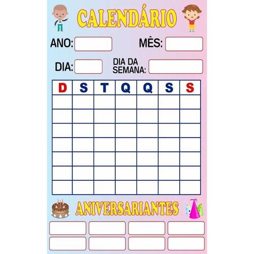 O Banner Didático Calendário Infantil Escolar é o material de apoio pedagógico ideal para auxiliar no processo de aprendizado das crianças. Com ele, os pequenos poderão compreender de forma lúdica e interativa o conceito de calendário, dias da semana, meses e estações do ano.