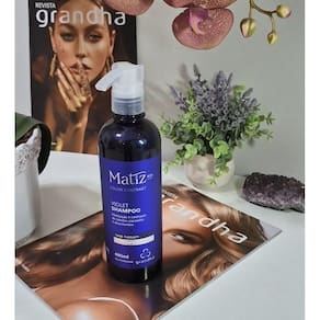 Matiz P21 Violet Shampoo para Loiros e Descoloridos 480ml NOVA FÓRMULA Tratamento capilar profissional de ação matizadora de cabelos loiros, descoloridos e super clareados. Formulação suave e especial com óleo essencial de lavanda e extrato de flor violeta para maior efeito de neutralização de tons indesejados. Uma composição inteligente que associa reflexos em tons de violeta e cinza para a contraposição de reflexos quentes. Emulsão de alto desempenho para o melhoramento da textura e do brilho.
