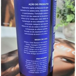 Tratamento capilar profissional de ação matizadora de cabelos loiros, descoloridos e super clareados. Formulação suave e especial com óleo essencial de lavanda e extrato de flor violeta para maior efeito de neutralização de tons indesejados. Uma composição inteligente que associa reflexos em tons de violeta e cinza para a contraposição de reflexos quentes. Emulsão de alto desempenho para o melhoramento da textura e do brilho.