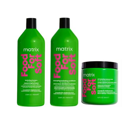 A Máscara Capilar Hidratante Matrix Food For Soft conta com a a ação do Óleo de Abacate e Ácido Hialurônico para hidratar e reter a hidratação da raiz às pontas para todos os tipos de cabelos secos e quebradiços. O cabelo fica hidratado e macio, com acabamento suave e brilho extra, sem frizz e menos poroso.