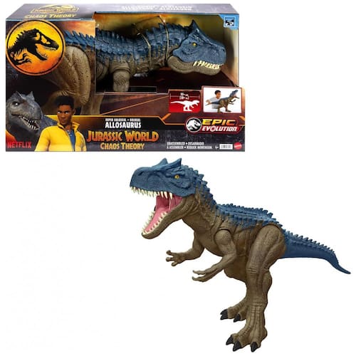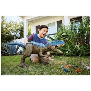 Com mais de 96cm de comprimento, o Allosaurus se torna Super Colossal! Esta figura de dinossauro extra grande não apenas aparenta ser feroz com sua espinha dorsal espinhosa, dentes ameaçadores e unhas dos pés retorcidas, mas também pode 'engolir' até 20 mini figuras de dinossauros! Figuras vendidas separadamente. Uma porta presa na barriga libera as mini figuras para jogar novamente facilmente. Inspirado na Teoria do Caos do Mundo Jurássico, este Super Colossal Allosaurus com mais de 96cm de comprimento permite que os fãs de Jurassic World ataquem o tempo de brincadeira de forma grandiosa! Este Allosaurus, representando o feroz predador de toda a franquia Jurassic World, possui um design que inclui incríveis espinhos nas costas, dentes afiados e olhos ameaçadores. As crianças podem saciar sua fome por agressão com este Allosaurus que pode engolir 20 mini figuras inteiras por meio de sua mandíbula larga! Libere a presa engolida pelo dinossauro carnívoro e comece tudo de novo. Um presente massivo e emocionante para os fãs de Jurassic World e para quem curte batalhas e ações em grande escala, a partir de 4 anos de idade.