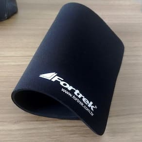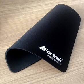 Mouse pad com base em E.V.A e superfície em tecido de microfibra para maior durabilidade e melhor contato com a pele sem impedir a rápida a movimentação do mouse.