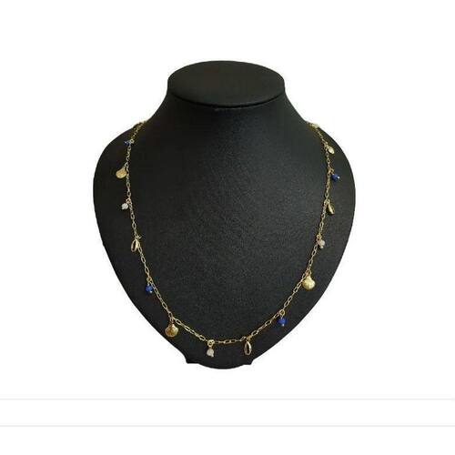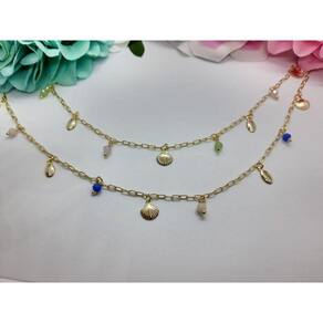 Colar banhado em ouro 18k, semi joia, com pingentes de búzios e conchas.