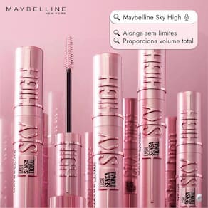 Máscara de cílios. Maybelline Sky High garante alongamento sem limites e volume total aos cílios, que tem impacto em todos os ângulos.