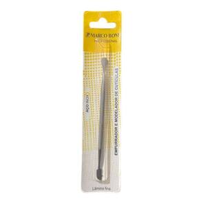 Mb 1816b Empurrador De Cutícula Lamina Fina MARCO BONI A empresa MARCO BONI consolidou-se no segmento de cuidados pessoais, higiene e beleza prezando sempre pela excelência na qualidade e inovação de seus produtos. SOBRE O PRODUTO O empurrador de Cutículas é um produto indispensável para as manicures nos dias de hoje pois ele auxilia em uma cutilagem perfeita, o empurrador de cutículas com a lâmina fina que ajuda a desprender as cutículas mais firmes sem cortar, proporcionado uma remoção completa das cutículas e com segurança. - Auxilia na cutilagem - Lâmina fina - Remove cutículas mais firmes - Não corta Indicação de uso: Após amolecer a cutícula, coloque a espátula no lugar desejado e pressione de maneira suave para não causar acidentes. Composição: aço inox SOBRE A LOJA -Desde 2018, nossa missão é realçar a beleza das mulheres da região com produtos 100% autênticos e garantia de procedência. Oferecemos importados com selo de qualidade da ADIPEC e acreditamos que cuidar da autoestima é um investimento. Realizamos trocas em até 7 dias, desde que o produto esteja lacrado. Seja bem-vinda ao nosso universo da beleza!