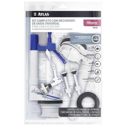 Características principais do produto: Família:Hidráulica Subgrupo: Acessórios Caixa Acoplada Marca:Atlas Linha Primafer Encaixe Universal: Compatível com todos os modelos de caixa acoplada
