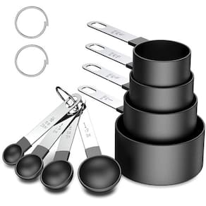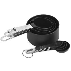 Medidor Culinário Inox Colher Copo Xícara Cozinha Preto 8Pçs