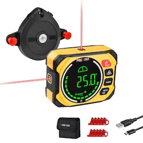 - Ferramenta de ângulo multifuncional 3 em 1: combina as funções de um nível digital, medidor de ângulo e linha de laser em um dispositivo. Operação simples de um interruptor liga e desliga 3 linhas de laser, projetando 3 linhas de nível na superfície; PREXISO permite que os proprietários comecem a pendurar fotos, montar quadros e renovar a casa facilmente; produto a laser Classe II, saída máxima de laser < 1 mW