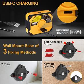 - Base de suporte de parede bônus: a base de montagem na parede ajuda as mãos livres para marcação. Com 3 formas de fixação: 1. com 2 pinos para superfícies ásperas; 2. com 10 tiras autoadesivas para superfícies lisas; 3. com furos de pino na parte superior para qualquer superfície