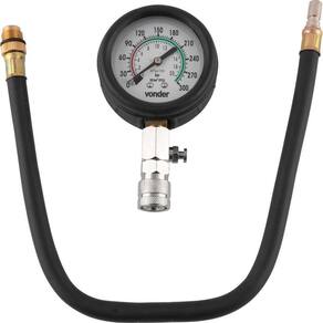 Possui manômetro de 4 com escalas de 0 - 300 lbf/pol. Conta com sistema de alívio de pressão. Acompanha maleta plástica com 4 adaptadores, mangueira flexível, além de dois tubos rígidos com vedação de borracha nas pontas, tornando o equipamento muito prático.