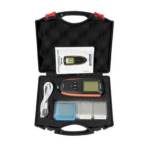 É fornecido numa maleta estofada com 6 lâminas de poliéster padrões de referência com espessuras aproximadas de 50, 100, 250, 500, 1000 e 1500 um , um bloco de ferro base fe , um bloco de alumínio base nfe e um cabo usb para carregamento da bateria.