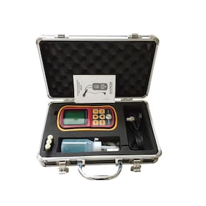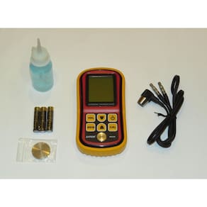 Medidor de espessura de chapas por ultrassom - kr220 + Certificado de calibração rastreável rbc/inmetro Descrição geral O kr220 mede a espessura de chapas de diversos materiais, tais como: metais, vidro, plásticos, cerâmicas, dentre outros. Possui indicação de acoplamento no visor lcd e permite calibrar ajustar o sensor de ultrassom através de bloco padrão. Ele grava em sua memória a velocidade do som de até 10 materiais distintos, as quais podem ser modificadas pelo usuário de acordo com os materiais mais utilizados em seus processos. Especificações técnicas Faixa de medição: 1.2 a 220 mm Resolução: 0.1 mm Exatidão: ± 1% + 0.1 mm Limite mínimo para medição em tubos: ø 20 x 3 mm Velocidade do ultrassom: 1000 a 9999 m/s ajustável Frequência do ultrassom transdutor : 5 mhz Diâmetro do transdutor ponteira : 10 mm Comprimento do cabo do transdutor: 1 metro Temperatura de operação: 0 a 40°c Umidade de operação: 10 a 90%ur sem condensação Temperatura máxima da superfície em medição: 60°c Alimentação: 4.5v 3 pilhas aaa Dimensões l x a x p : 72 x 146 x 29 mm Peso: 200 g Recursos principais - calibração automática ajuste via bloco padrão - memória para 10 materiais distintos personalizáveis - modo de medição indireto para materiais não conhecidos - indicação de acoplamento - indicação de bateria fraca - desligamento automático Itens inclusos - sensor de ultrassom 5 mhz transdutor - tubo de gel acoplante 50 ml - 3 pilhas aaa alcalinas - bloco padrão 4.0 mm para calibração ajuste - maleta de metal para transporte - manual de instruções em português