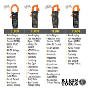 Klein Tools CL390 Braçadeira digital AC/DC, alcance automático, 400 Amp, integração de garra de testador NCVT, display LCD Hi-Viz, visor de contraste reverso, TRMS e mais - Medidor de braçadeira versátil: mede corrente AC/DC e NCVT via grampo; tensão AC/DC, resistência, continuidade, frequência/ciclo de trabalho, microamplificadores DC, teste de diodo e capacitância por meio de cabos de teste; temperatura via termopar - TESTE DE TENSÃO NÃO CONTACTO: Integrado na garra do grampo para testes elétricos convenientes - Visor retroverso: o LCD de contraste reverso de alta visibilidade garante melhor visibilidade em todas as condições de iluminação - MEDIDAS PRECISAS: A tecnologia de alcance automático e True Root Mean Squared (TRMS) oferece medições precisas e precisas - CARACTERÍSTICAS CONVENIENTES: Suporte de grafite de teste na lateral do grampo e gancho magnético opcional (Cat. Nos. 69445 ou 69417) para operação sem usar as mãos - Características adicionais: Max/Min, Rel/Zero, capacidade de retenção de dados para funcionalidade aprimorada e desligamento automático após 10 minutos para economizar a vida útil da bateria - PACOTE COMPLETO: Inclui estojo de transporte, cabos de teste com tampas de segurança CAT III/CAT IV, termopar, instruções e 3 x pilhas AAA