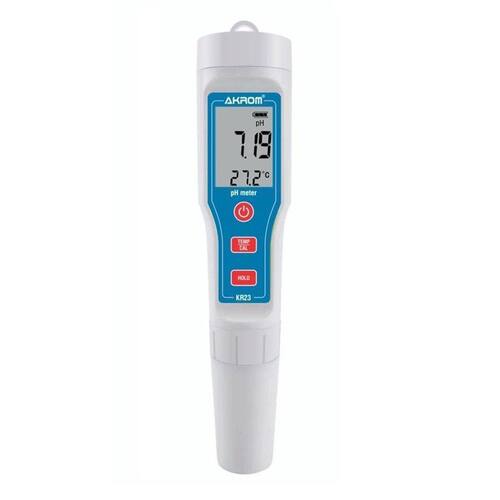 O medidor de ph de bolso kr23 mede e indica também a temperatura através de um Sensor conjugado ao eletrodo e realiza a compensação automática do valor de ph Em função da temperatura função atc , fazendo com que ele mantenha sua excelente Exatidão em toda a faixa de operação.