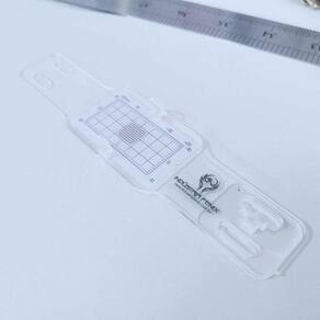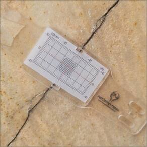 Principais características: - Medidor de rachadura/fissuras padrão. - Composto por duas placas acrílicas sobrepostas. - Placa superior transparente e marcada com cursor em forma de cruz. - Permite o acompanhamento periódico e preciso do deslocamento da rachadura. - Pode ser fixado em qualquer superfície utilizando-se parafusos ou substrato adesivo não incluído .