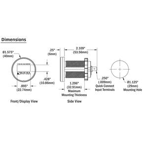 - Cor: Amarelo, metro: medidor de tanque, tensão nominal: 12V CC/ 24V CC, resolução: 5%, tensão de entrada: 8V–36V DC, remetentes compatíveis: europeu = 10-180 Ohms e norte-americano = 240-33 Ohms, ciclos de vida: 100.000 horas, corrente operacional: 17mA, faixa de temperatura operacional: -40°C – 70°C (-40 °C – 70 °F)