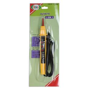 VOLTÍMETRO 3 EM 1SKU: ID8864MTCOR: AmareloMarca: IdeaO Teste de Voltagem 3 em 1 foi produzido para proporcionar mais facilidade no dia a dia. Realiza a medição de tensão em corrente contínua e corrente alternada, além de indicar a polaridade. Voltímetro 3 em 1Testes em:-Tomadas-Interruptores-Fusíveis-Velas-Condensadores-Corrente-Polaridade DC-Frequência-Linha polifásica110V 220V 277V 460V 60Hz