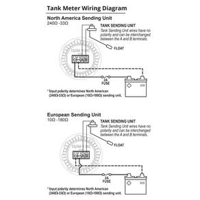 - Cor: azul, metro: medidor de tanque, tensão nominal: 12V CC/ 24V CC, resolução: 5%, tensão de entrada: 8V–36V CC, remetentes compatíveis: europeu = 10-180 Ohms e norte-americano = 240-33 Ohms, ciclos de vida: 10.000 horas, corrente operacional: 17mA, faixa de temperatura operacional: -40°C – °C 70°C. 40 °C – 70 °C