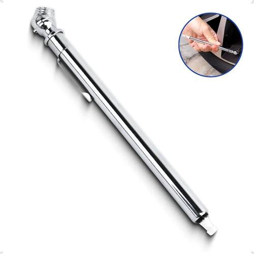 Sobre o produto: ----------------------- Mantenha seus pneus sempre calibrados com o prático Calibrador Tipo Caneta de 50 lbs. Compacto e durável, ele é feito em aço cromado com régua em PVC, medindo apenas 15,5 cm.