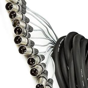 Medusa montada pela Cirilo Cabos com conectores Combo, marca própria. A vantagem do combo é poder plugar dois tipos distintos de conectores, o XLR e o P10 plug banana. Na ponta dos cabos vão conectores XLR macho. Este produto é ideal para transmissão de som profissional, sem prejuízos na qualidade ou interferência de ruídos externos.